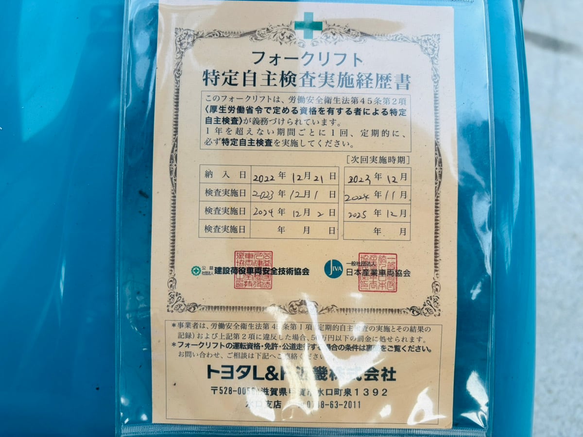 本車両は、大手自動車部品メーカー様にて月次・年次点検を継続実施されていた、管理状態の良い車両です。